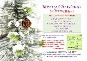 国立キリスト教会は東京都国立市にあるキリスト教プロテスタントの教会です。日曜日には子どもから大人までいっしょに礼拝をささげます。各年代層が幅広く集うアットホームな教会です。