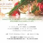 2019年11月15日 / 最終更新日 : 2019年11月19日 kcc@sakuraadmin お知らせ集会案内 女性のためのクリスマスカフェのご案内 今年も女性のためのクリスマスカフェを開催いたします。 あたたかく、ちょっとおしゃれな女性たちのための集いです。 ご興味のある方は、教会にご連絡ください。 お待ちしております。