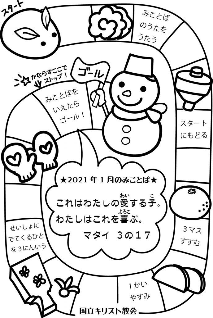 2021年1月7日 / 最終更新日 : 2021年1月7日 kcc@sakuraadmin お知らせ 1月のみことばカード 1月のみことばカードです。こんかいは、すごろくになってるよ。いろをぬって、こまとサイコロをよういして、あそんでね。はがきの大きさのかみにいんさつできます。大きなかみにいんさつすると大きなすごろくになるよ!
